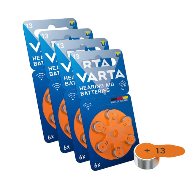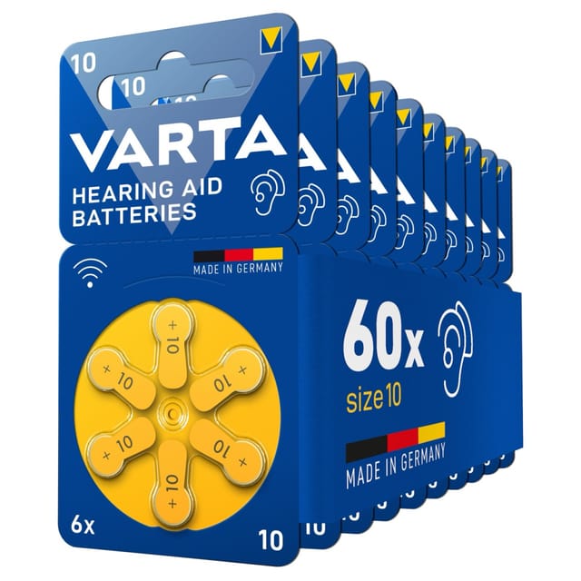 Pilas Auditiva VARTA #13 - CAJA - 10 Blisters - Marca: VARTA - 10 Blisters de 6 pilas c/u - Total: 60 pilas - Fabricado en Alemania, hecho para durar - Proporciona niveles de voltaje altos y estables. - Optimizadas para Aparatos Auditivos digitales y con capacidad Wireless - Blister con conveniente disco rotatorio - Blister de doble capa con Sello de Garantía - Pilas libres de mercurio - VARTA, expertos en pilas desde 1887 - Cumple con la regulación de dispositivos médicos de la Unión Europea (MDR)