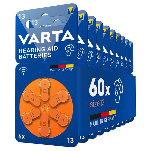 Pilas Auditiva VARTA #10 - CAJA - 10 Blisters - Marca: VARTA - 10 Blisters de 6 pilas c/u - Total: 60 pilas - Fabricado en Alemania, hecho para durar - Proporciona niveles de voltaje altos y estables. - Optimizadas para Aparatos Auditivos digitales y con capacidad Wireless - Blister con conveniente disco rotatorio - Blister de doble capa con Sello de Garantía - Pilas libres de mercurio - VARTA, expertos en pilas desde 1887 - Cumple con la regulación de dispositivos médicos de la Unión Europea (MDR)